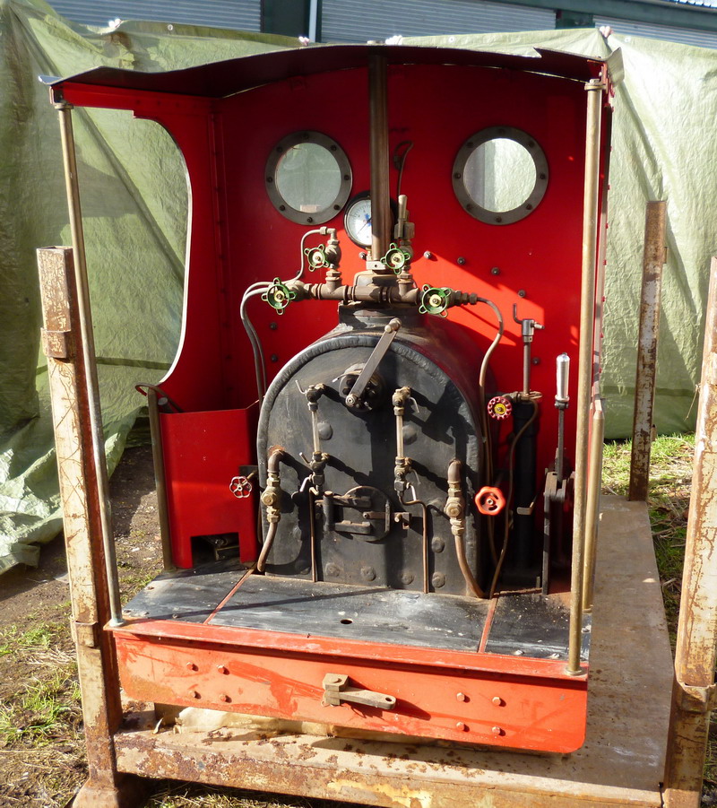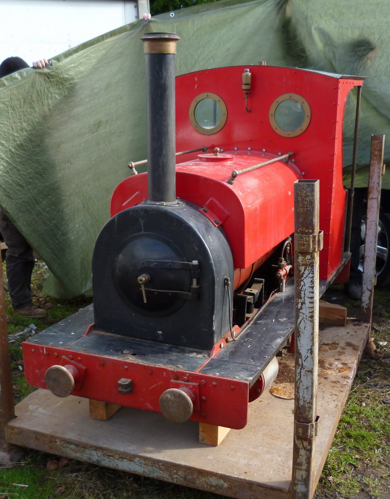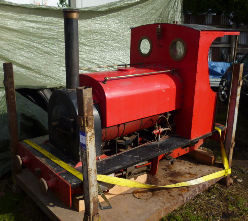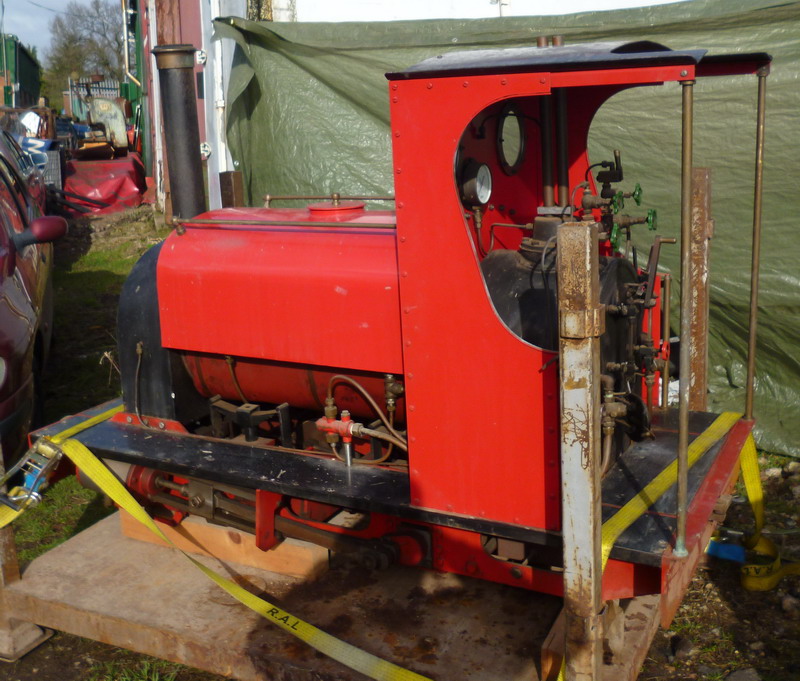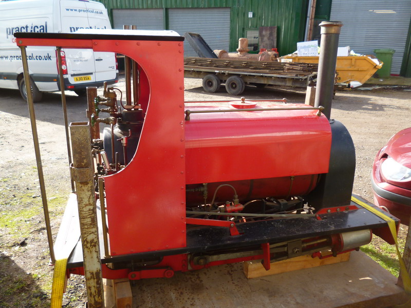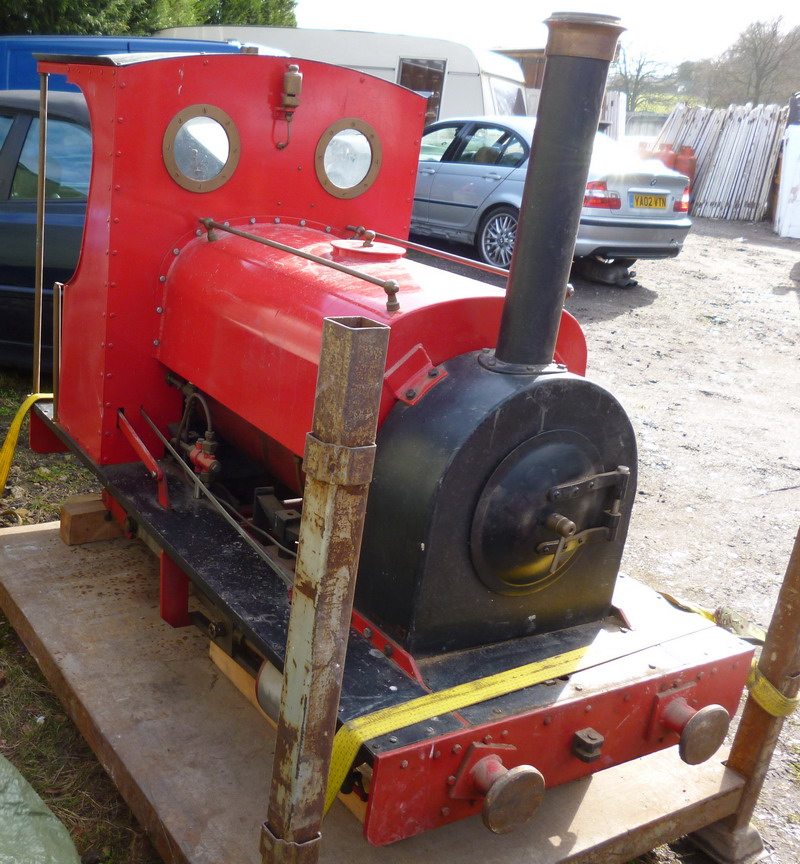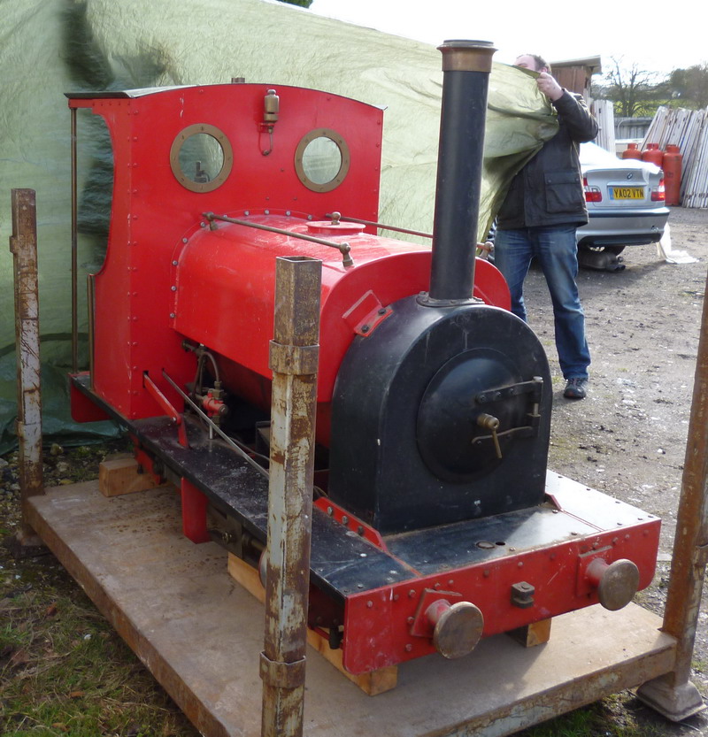 The locomotive as new in about 1998, ran for a couple of years and has been in storage since then. Width over footplate 35" Height over cab roof 53" Height over Chimney 57" Length over buffer planks 74" plus (front only) buffers 3 1/2" Fitted 2 injectors, 2 off 3 cock water gauge frames, screw hand brake Wheel Base 20 1/4"Wheel Dia on Tread 10"Cylinder bore 3 1/2"Cylinder stroke 4 1/2" Boiler. Welded Steel stamped D and S Steam tested 200psi, working pressure 100psi - tested 15/6/1998 BI Overall length front tube plate to back head 48"Barrel 13" OD x 35" long Firebox outer wrapper 18" wide, 13" front to back, 24" high Inner Fire box is 14 1/2" high x 12 1/2" wide by 8" front to back Tubes 23 off 1 5/16" OD thick steel. Currently without boiler certificate but this is not expected to be an issue. All dimensions approximate.The saddle tank feeds 2 off injectors directly, feed from a tender tank is not required.There is no driving truck/tender available.This locomotive could be regauge to 12" or 12 1/4" gauge, plenty of room between the frames and the wheels.Safety valves need to be replaced, new gauge frame fittings and some backhead pipework plus screwed fittings also need changing. We offer at £28,500 including VAT with a boiler certificate, new safety valves, boiler fittings boiler fittings changed etc Or £ 24,500 including VAT in as is condition without a boiler certificate. weight 750kg approx