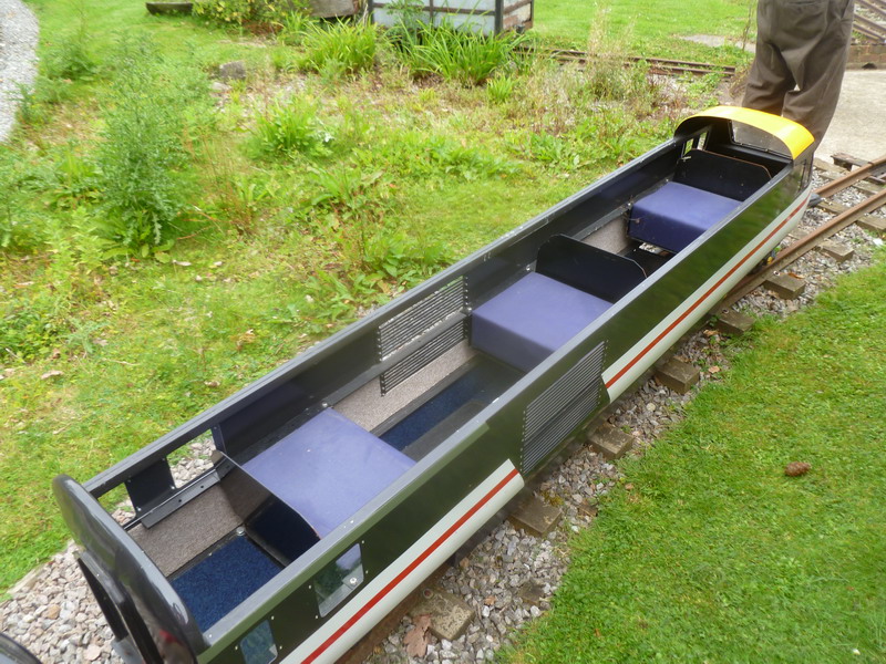 Battery powered power car, 4 motors, sound system Centre car and un-powered trailer car. Intercity livery, Power Bogies are not of Mardyke manufacture