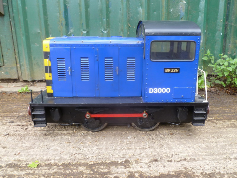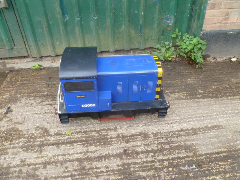 7 1/4 inch gauge - BRUSH Blue with very nice body Length over buffers 33 inch (860mm) Width 15.75 inch (400mm) Height over cab 20.75 inch (530mm) Approx weight 45kg Fitted with Suffolk Punch lawn mower type engine - gear box will only drive forward. We have not run this engine - would be best converted to battery electric