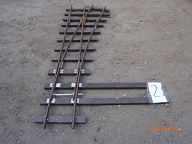 7 1/4 inch gauge right hand point. 15ft radius. 1.89m long. 21mm high steel rail screwed to brown plastic sleepers